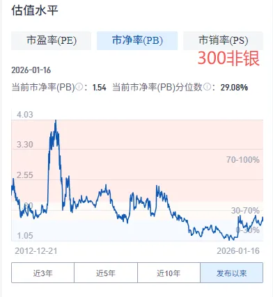 300非银,市盈率10.52倍,估值分位数1.2%,市净率1.54倍,分位数29.08%;