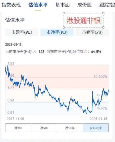 港股通非银,市盈率8.5倍,估值分位数18.29%,市净率1.23倍,分位数64.11%。