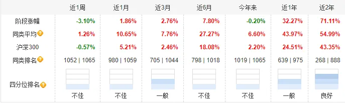 截至2025年三季度末,该基金过去1年/3年/5年分别跑赢业绩基准15.52%,9.38%和22.76%,最近2年由易方达指数增强基金老将张胜记掌舵,业绩显著好转。