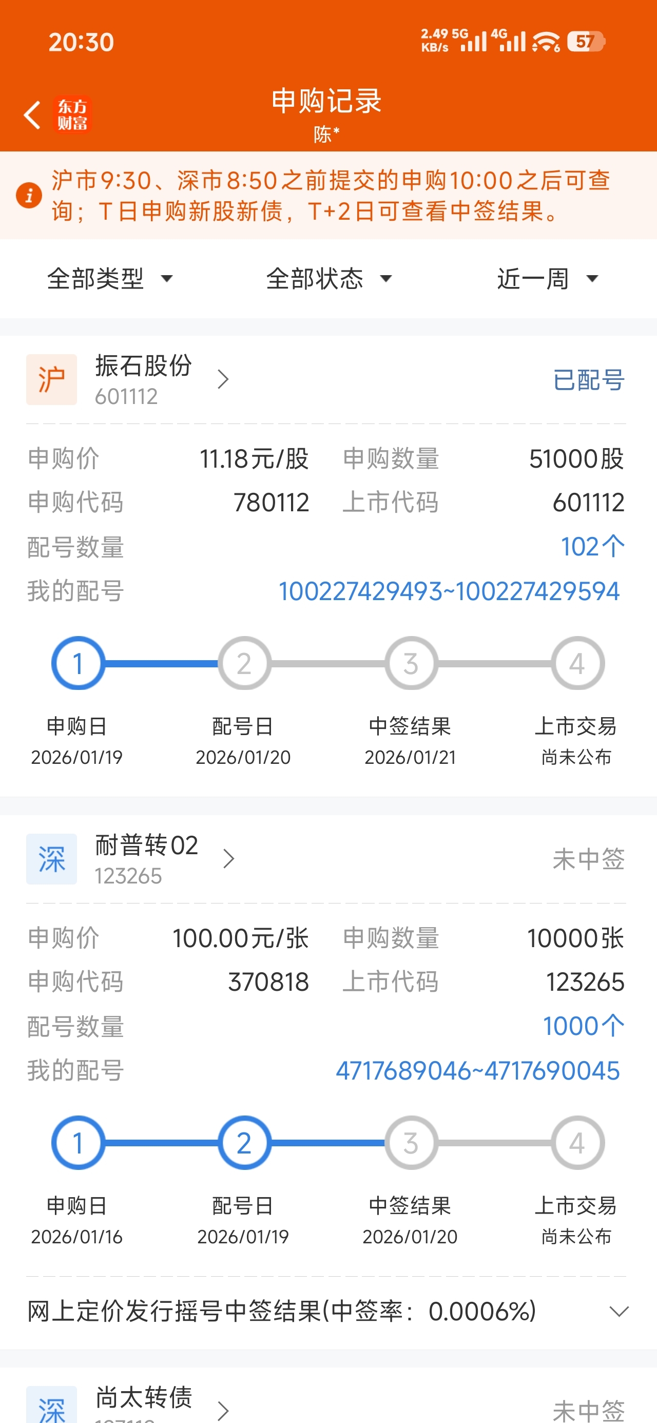 $振石股份(SH601112)$ 让我中一次吧,为了打新买的银行和$中国移动(SH600941)$ 亏死了