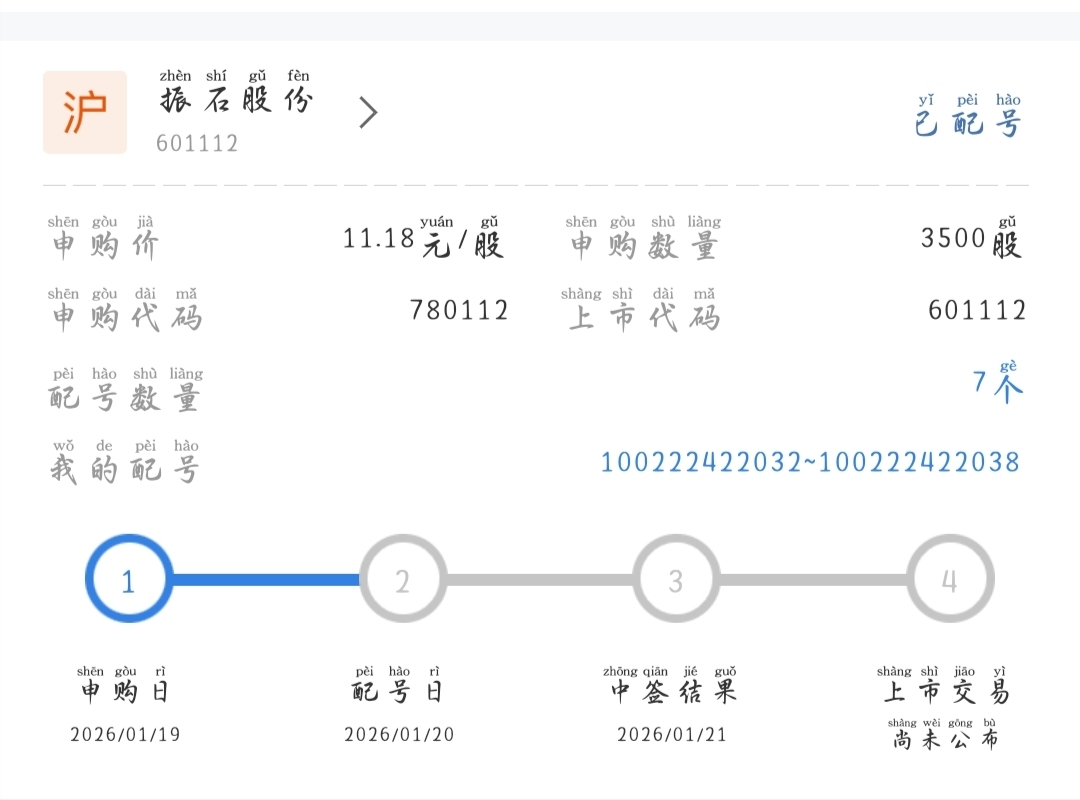 $振石股份(SH601112)$ 财神爷看看我!我只是个想中签的小可怜, 让我体验一下躺赢的快乐吧