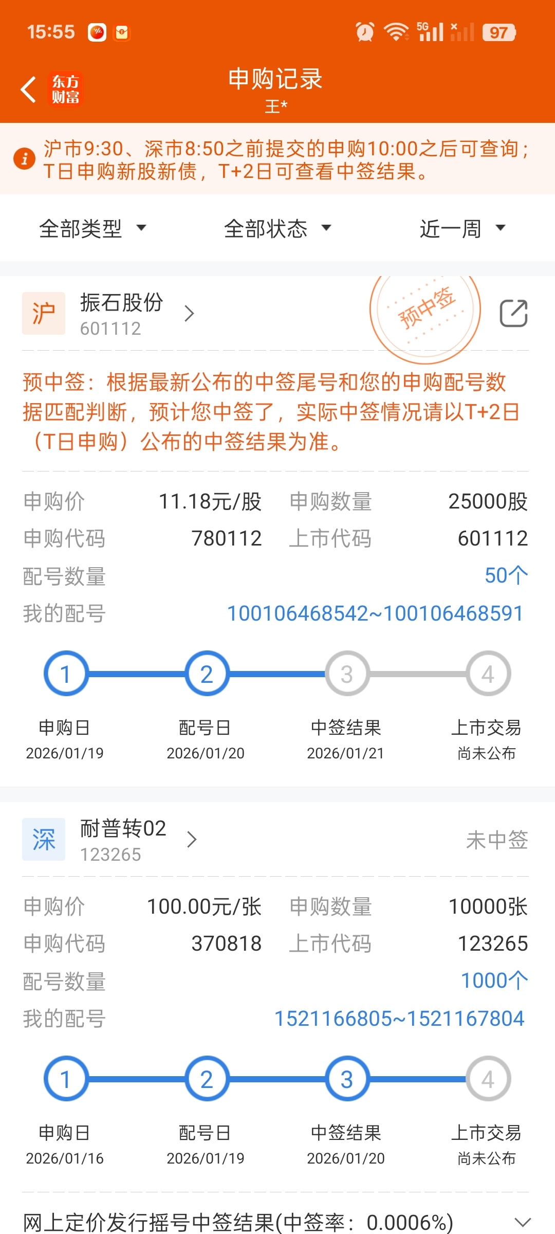 $振石股份(SH601112)$ 这么容易中签啊,会不会跌破发行价