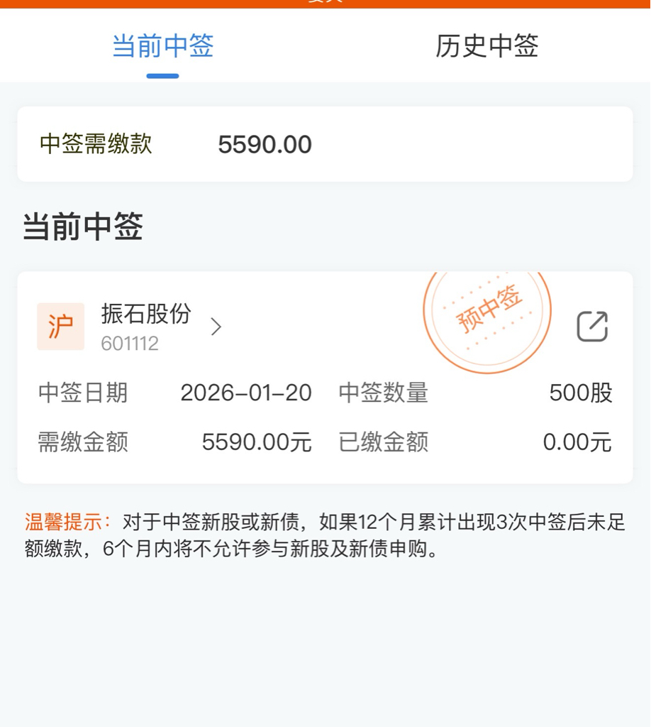 $振石股份(SH601112)$ 新人小白第一次中签啊!