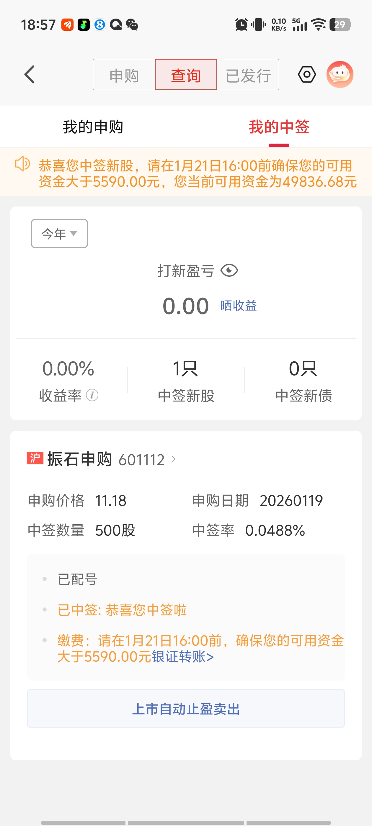 $振石股份(SH601112)$ 我好像中签了,历史第一次