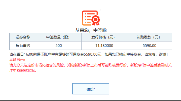 中签601112振石股份,发行价11.18不错!