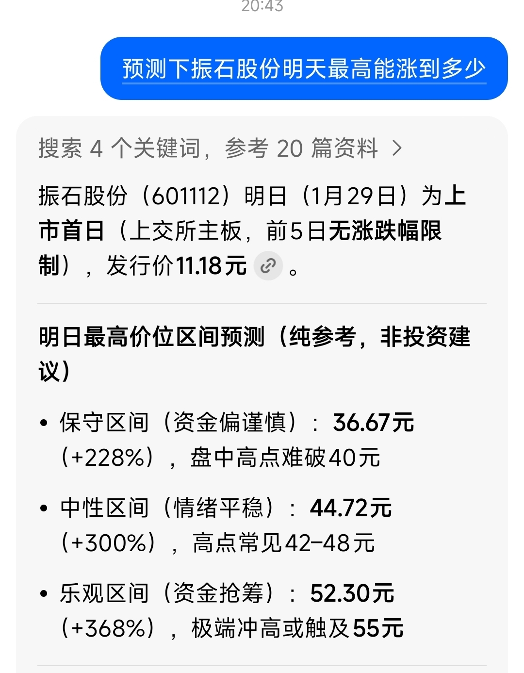 $振石股份(SH601112)$ 明天最高可以到55,这次我信豆包