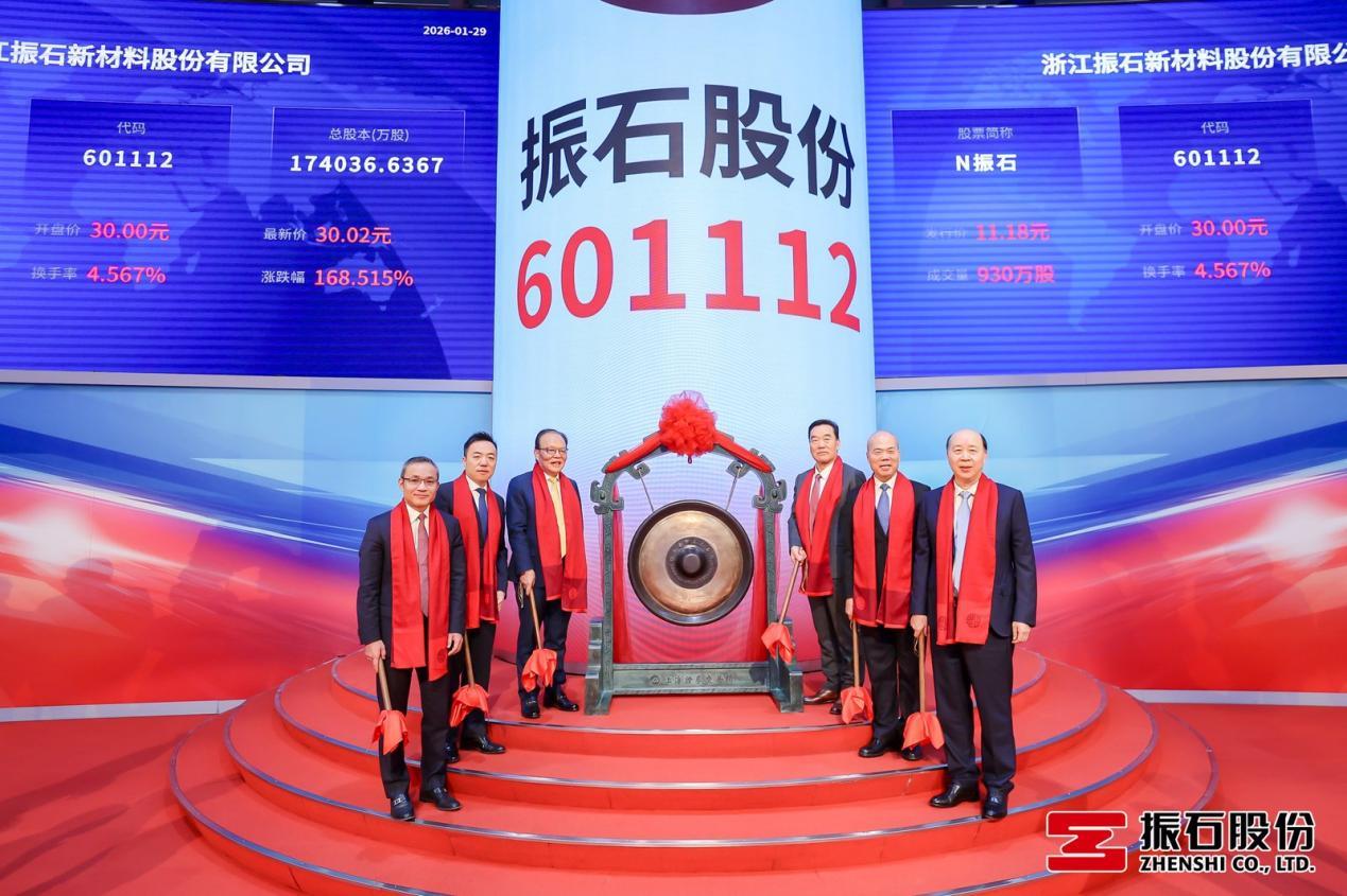 1月29日,浙江振石新材料股份有限公司(股票简称:振石股份,股票代码:601112)正式在沪主板敲锣上市,为资本市场注入清洁能源材料领域的核心力量。公开资料显示,振石股份主营清洁能源领域纤维增强材料研发、生产及销售。
