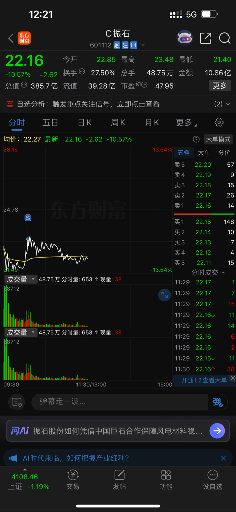$C振石(SH601112)$ 还好冲高就果断跑了,苟氜徳触升,下次盘大的坚决不买