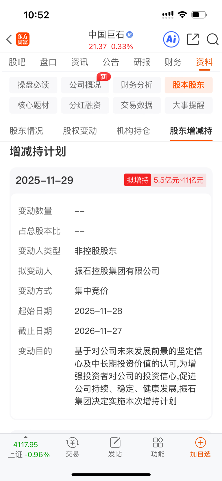 $C振石(SH601112)$ 增持的钱几天就来了,很好。够狠的。