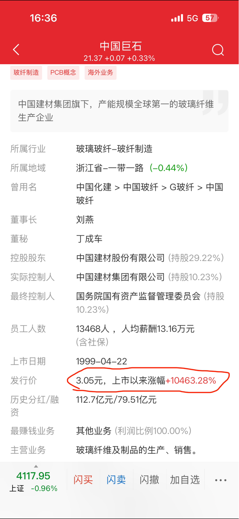 中国巨石发行价3. 05元,现在已涨10倍了!