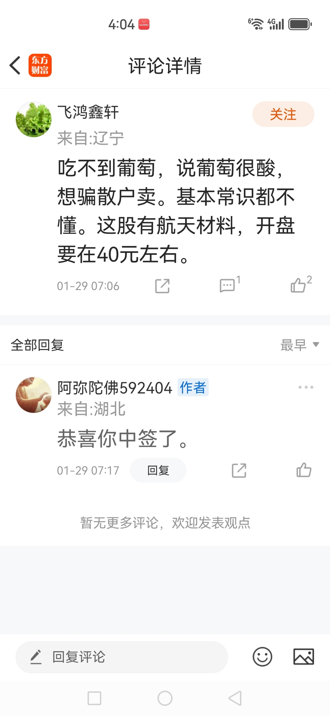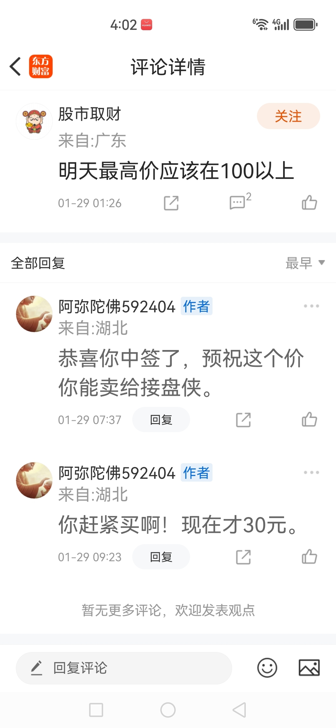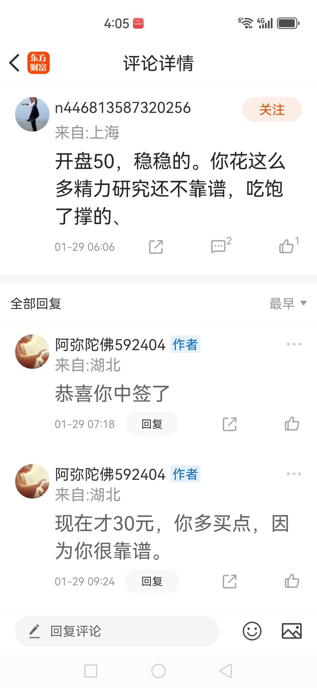 温馨提示: 1.根据《证券法》规定,禁止编造、传播虚假信息或者误导性信息,扰乱证券市场;2.用户在本社区发表的所有资料、言论等仅代表个人观点,与本网站立场无关,不对您构成任何投资建议。用户应基于自己的独立判断,自行决定证券投资并承担相应风险。《东方财富社区管理规定》