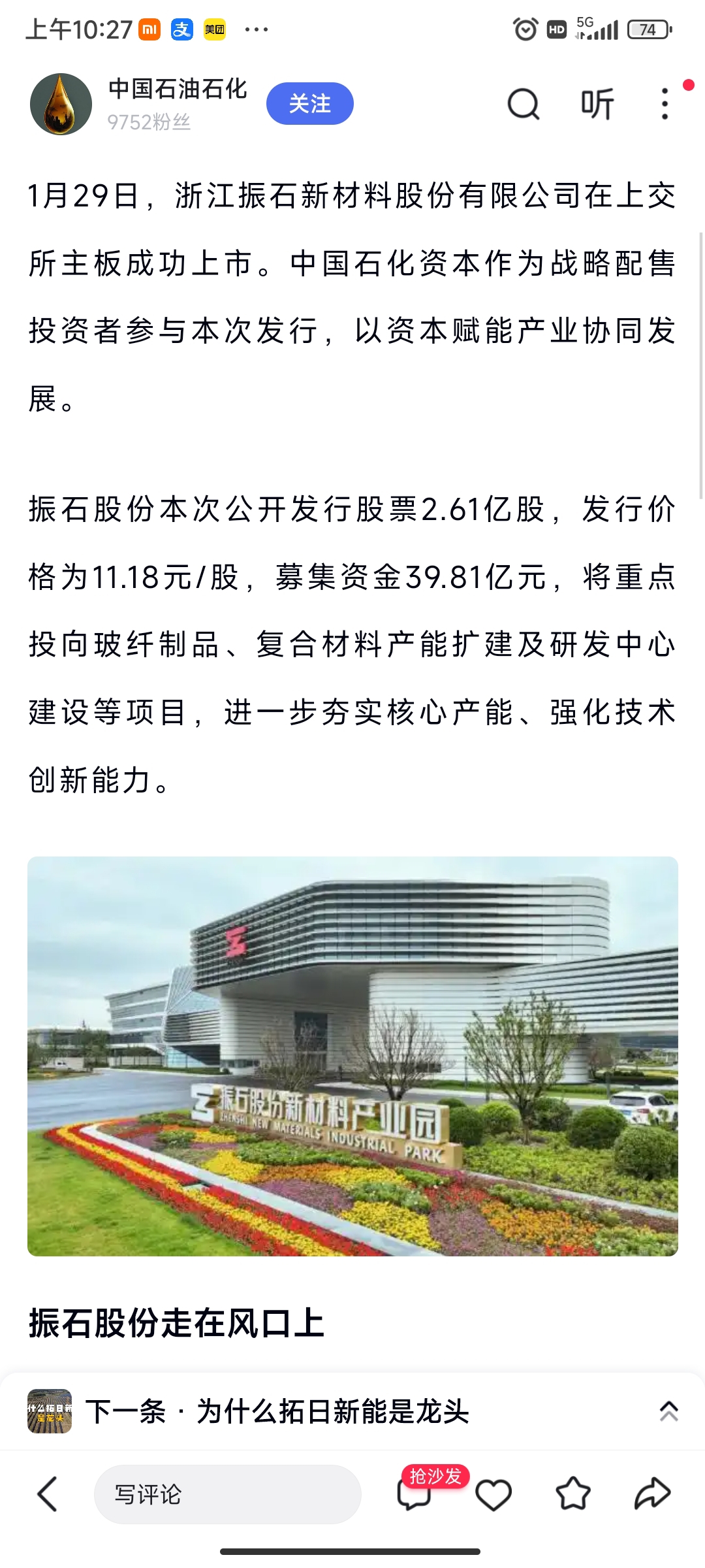 $C振石(SH601112)$ 这票全部只有10%流通股,首日套了10亿,还有约10亿中签票没动,大概只有20亿左右筹码在流动,振石属于那种基金标准配置票,继续大跌不大可能,能不能大涨得看有没有大资金愿弄了。个人是感觉这票可能走出铀业那种趋势,拿两天看看先。