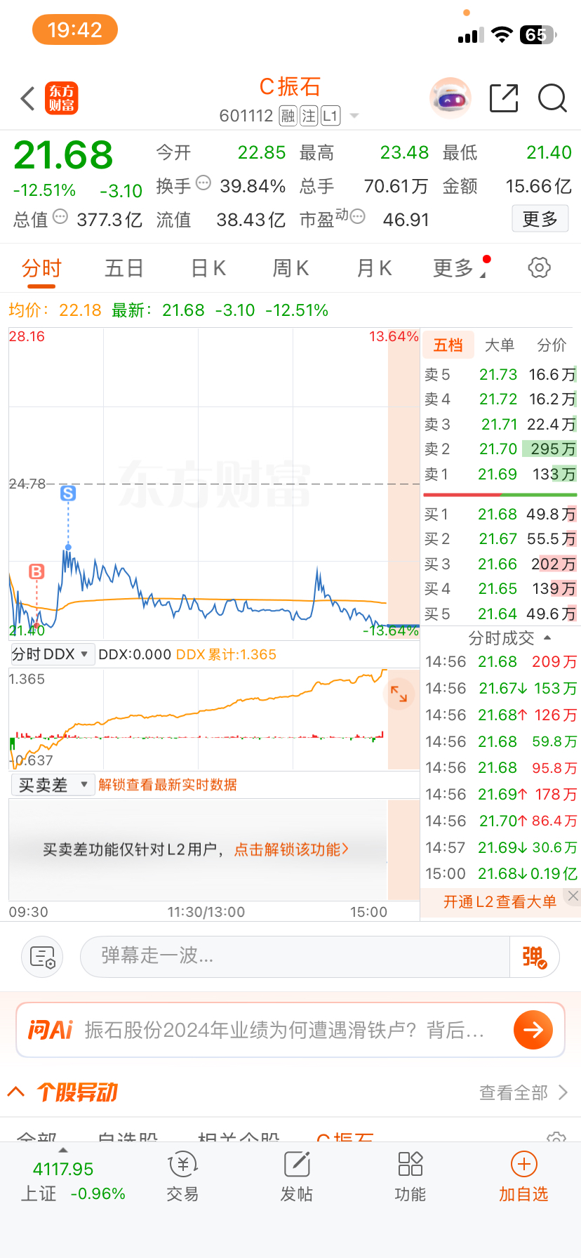$C振石(SH601112)$ 跌麻了,成本都看不到了