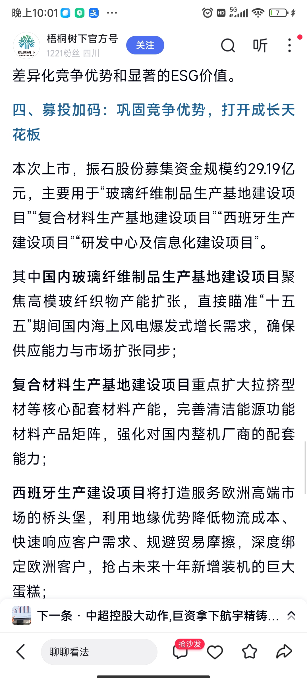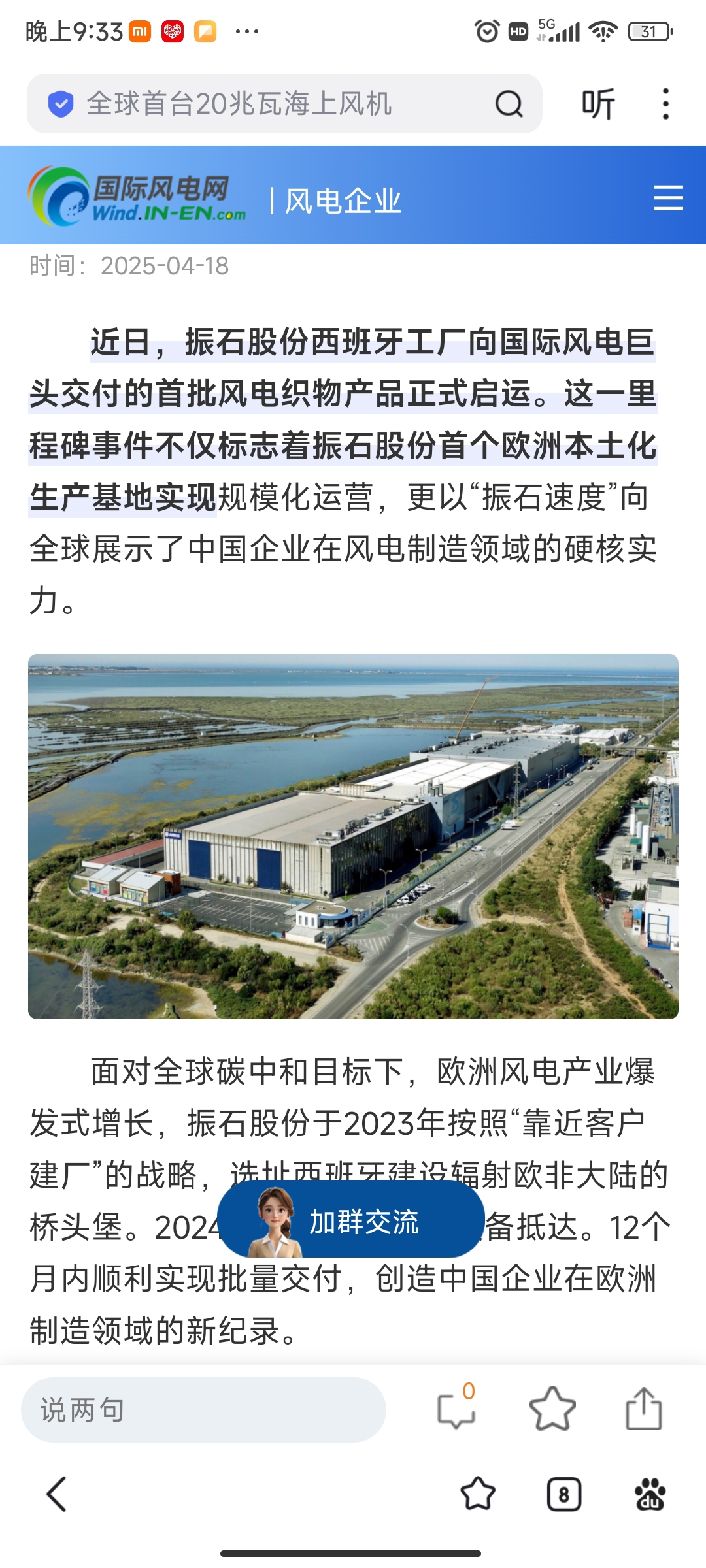 $C振石(SH601112)$ 募投资金项目含西班牙工厂扩大投入,应该是西门子订单在手了。中英合作加强,明阳智能英国工厂可能会获批,那能立马受益ar7.ar8项目,无论是中企还是外企中标,叶片总归是振石的,全球市占率35%吹不出来的。关注未来欧盟万亿欧元风电投资。