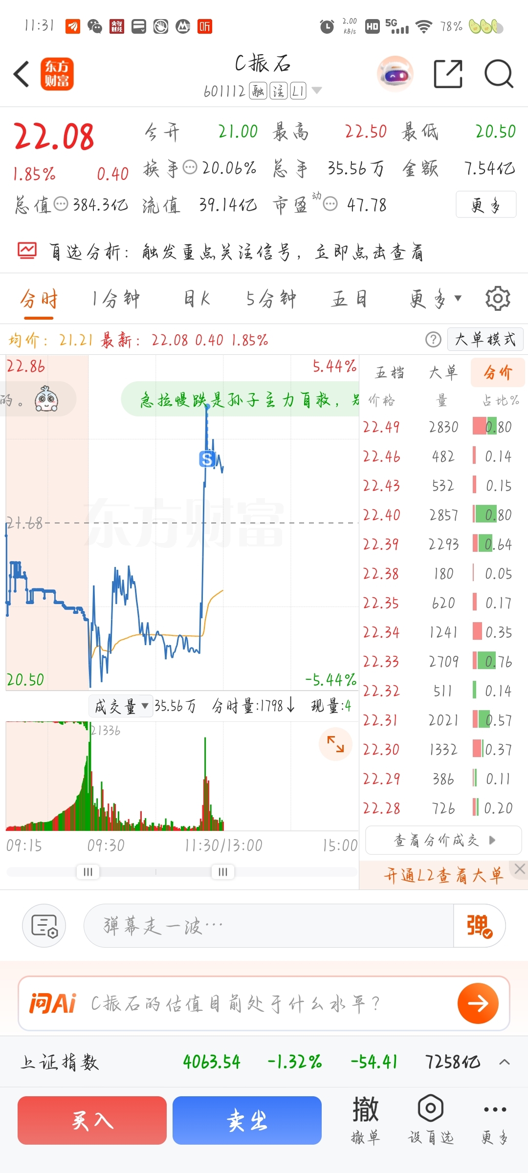 $C振石(SH601112)$ 不知道有没有走对,下午应该还有更高