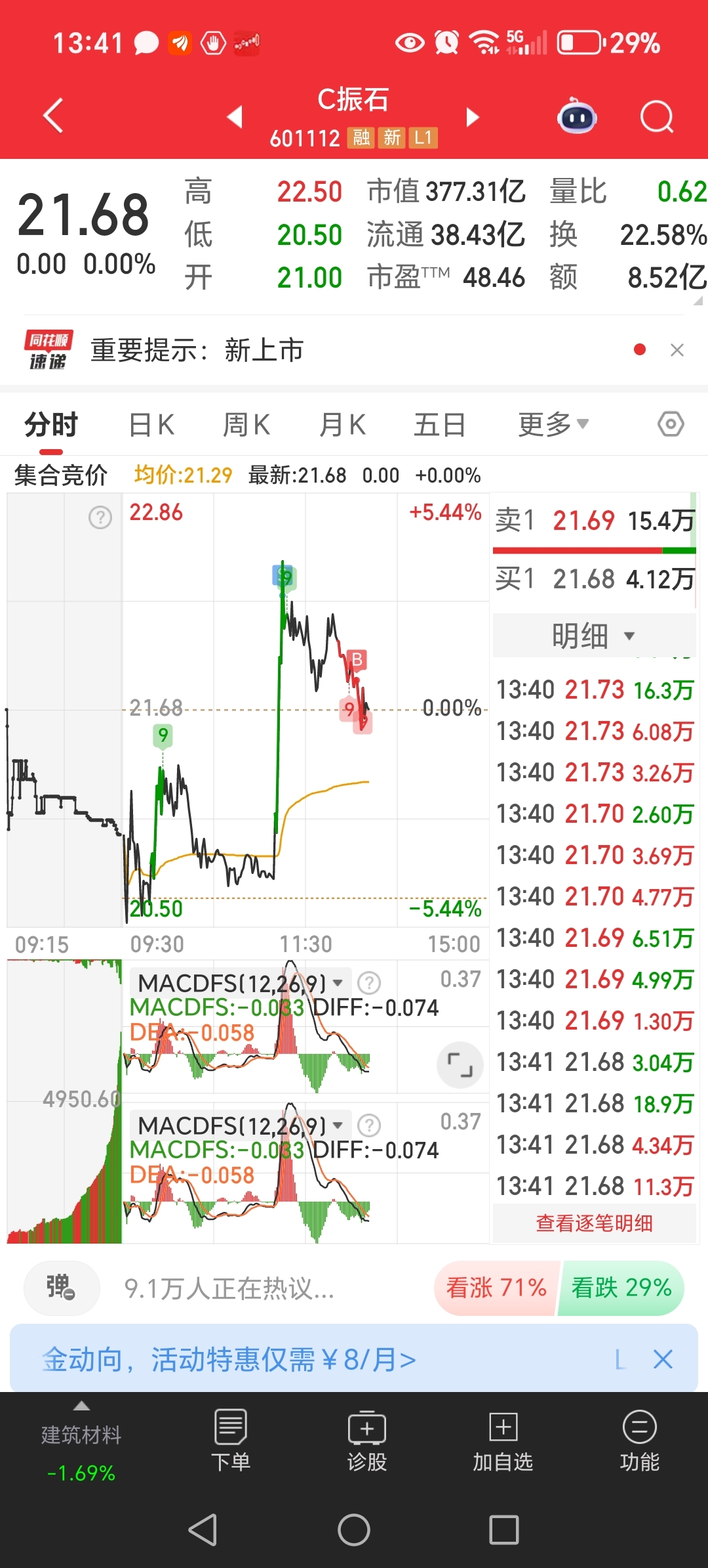 $C振石(SH601112)$ 做了一个不成功的踢,唉,散户赚钱太难了