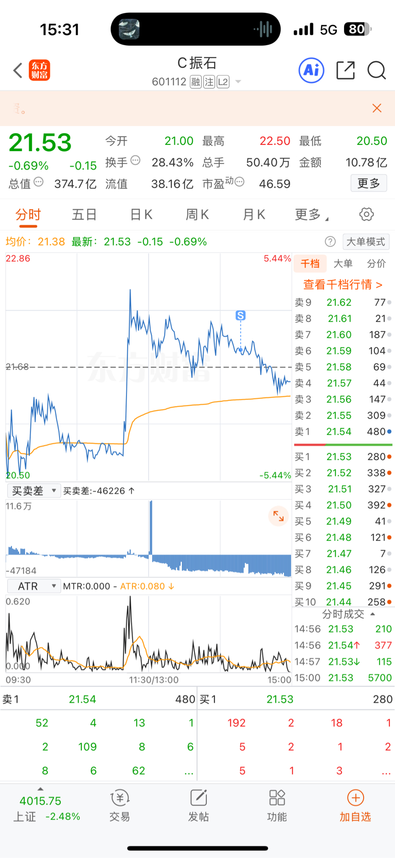 $C振石(SH601112)$ 格局一天亏了五分钱