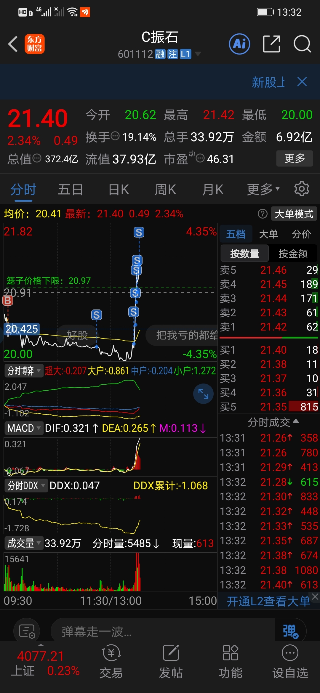 $C振石(SH601112)$ 急拉快跑,小心快速回落!