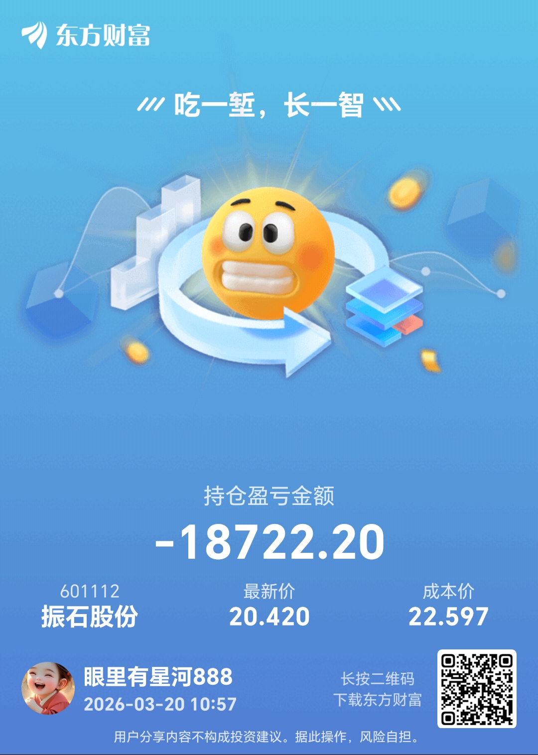 温馨提示: 1.根据《证券法》规定,禁止编造、传播虚假信息或者误导性信息,扰乱证券市场;2.用户在本社区发表的所有资料、言论等仅代表个人观点,与本网站立场无关,不对您构成任何投资建议。用户应基于自己的独立判断,自行决定证券投资并承担相应风险。《东方财富社区管理规定》