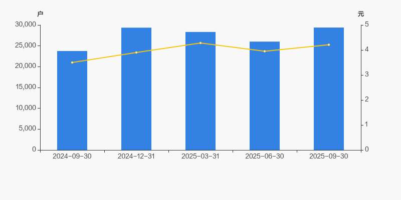 2024年9月30日至今,公司股东户数显著增长,区间涨幅为23.69%。2024年9月30日至2025年9月30日区间股价上涨20.29%。