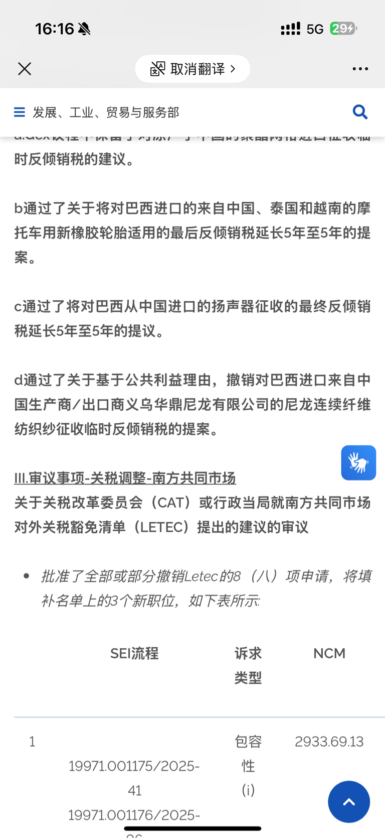 $华鼎股份(SH601113)$ 巴西的反倾销税的提案撤销了,可以可以