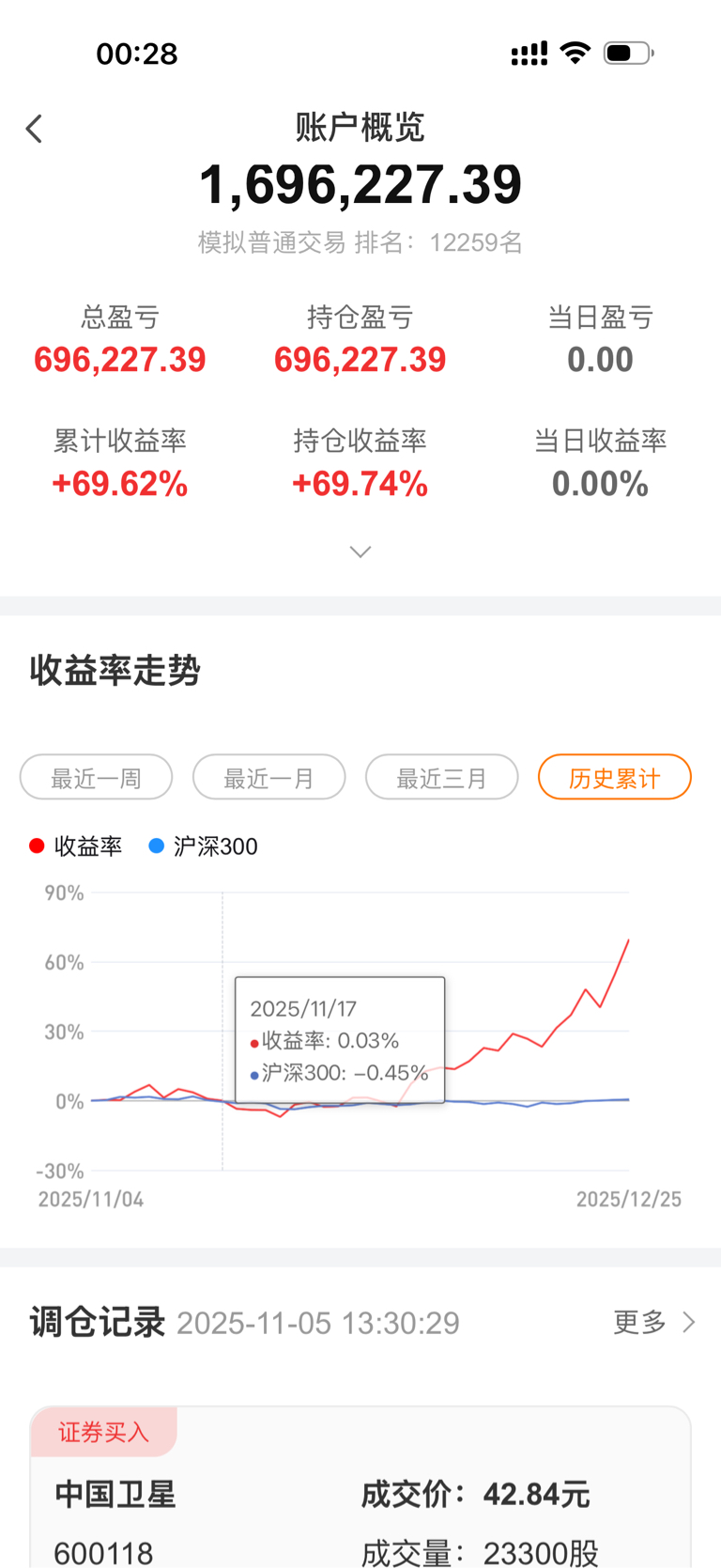 当时就是卫星和华鼎中选了一下,然后自己买的华鼎,模拟炒股的卫星,模拟一个半月都涨