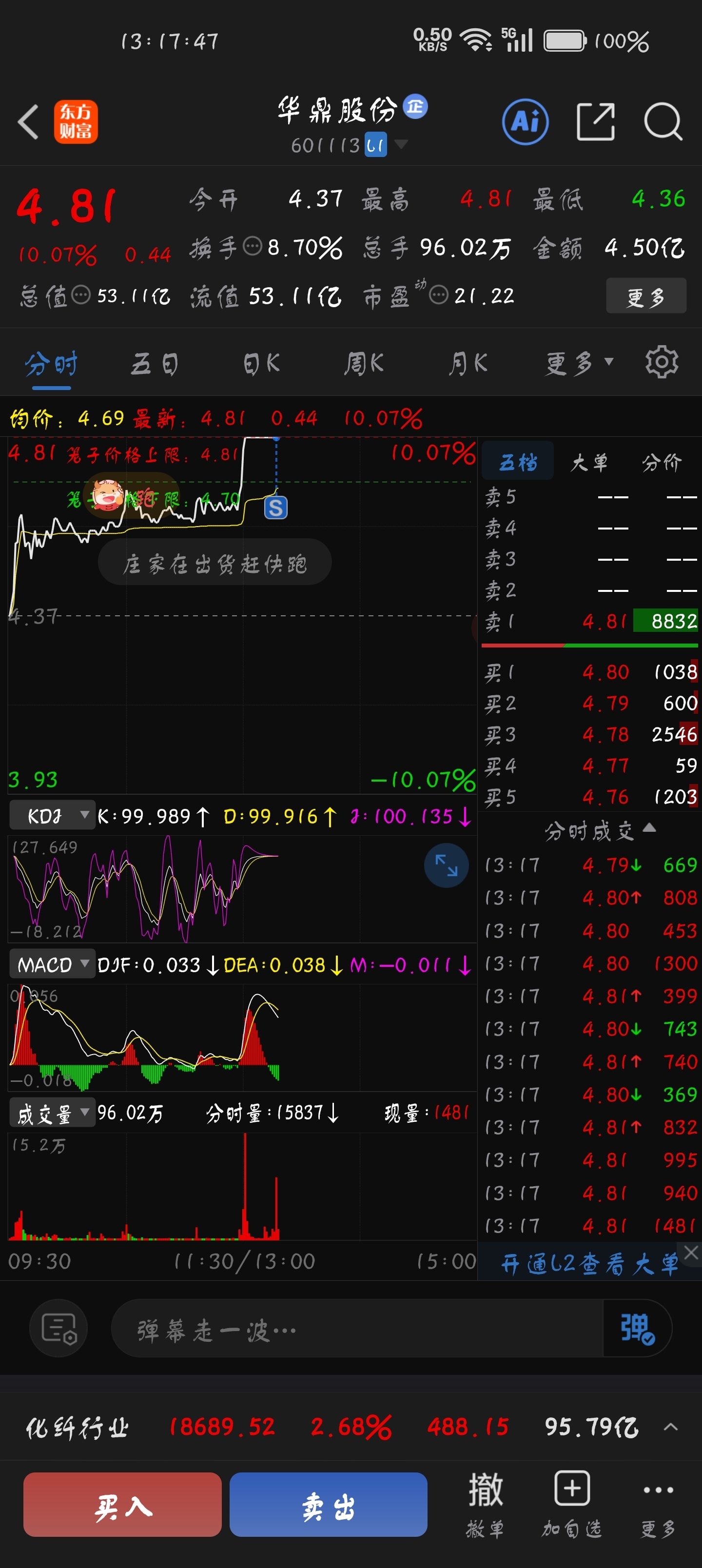 $华鼎股份(SH601113)$ 吓跑了