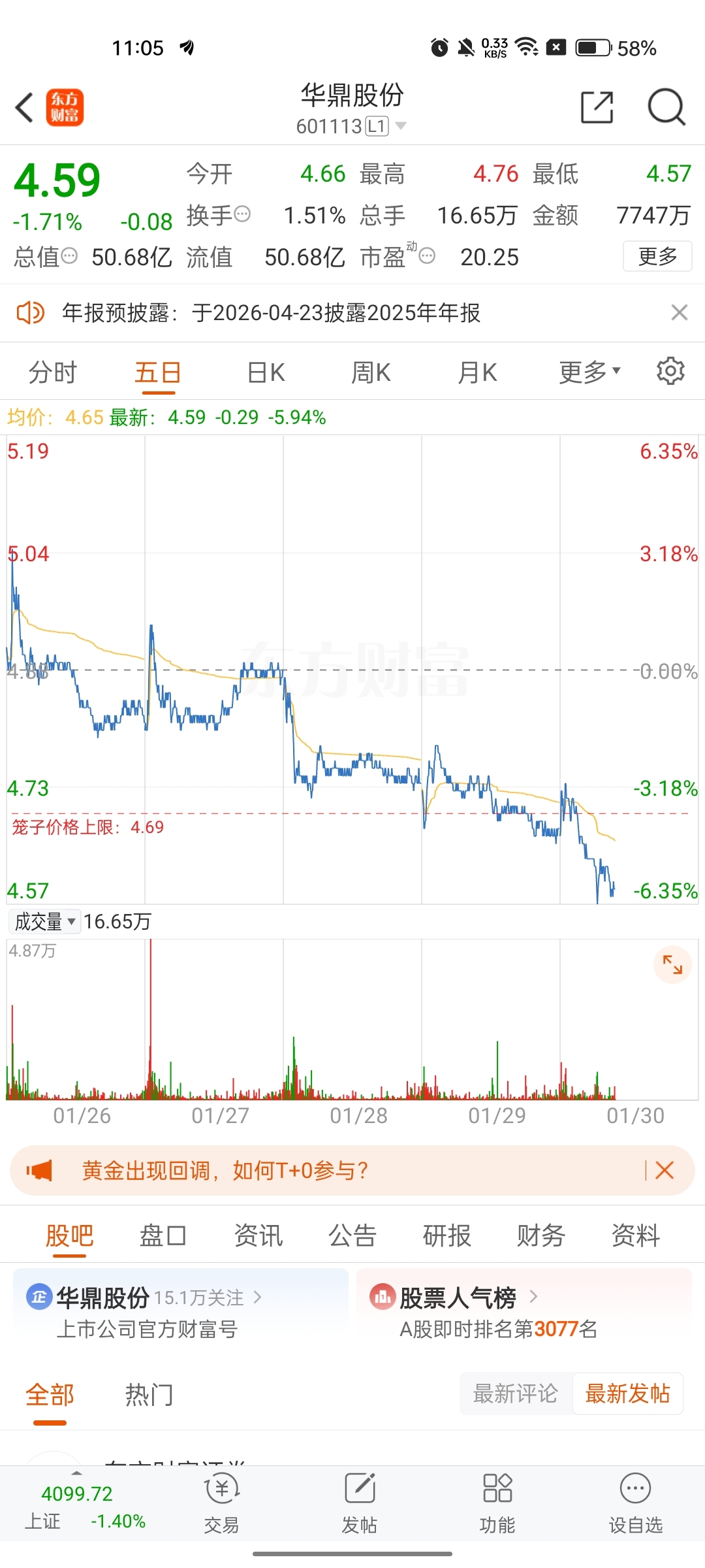 $华鼎股份(SH601113)$ 你们别在那里幻想了,谁家要大涨的股票能天天跌呀,别在那里用超短的思想去想他,这个股你只能价投的思想跟他耗才能有收获