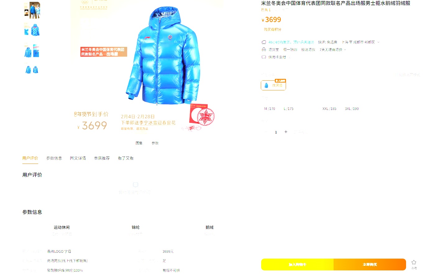 米兰冬奥会将在北京时间2月7号凌晨正式开幕,部分比赛的先行预选已经于2月6日早时开始,随着比赛的进行,中国代表团本次比赛相关服装爆火出圈。其中最受欢迎的高端团队出场系列羽绒服为100%锦纶面料。