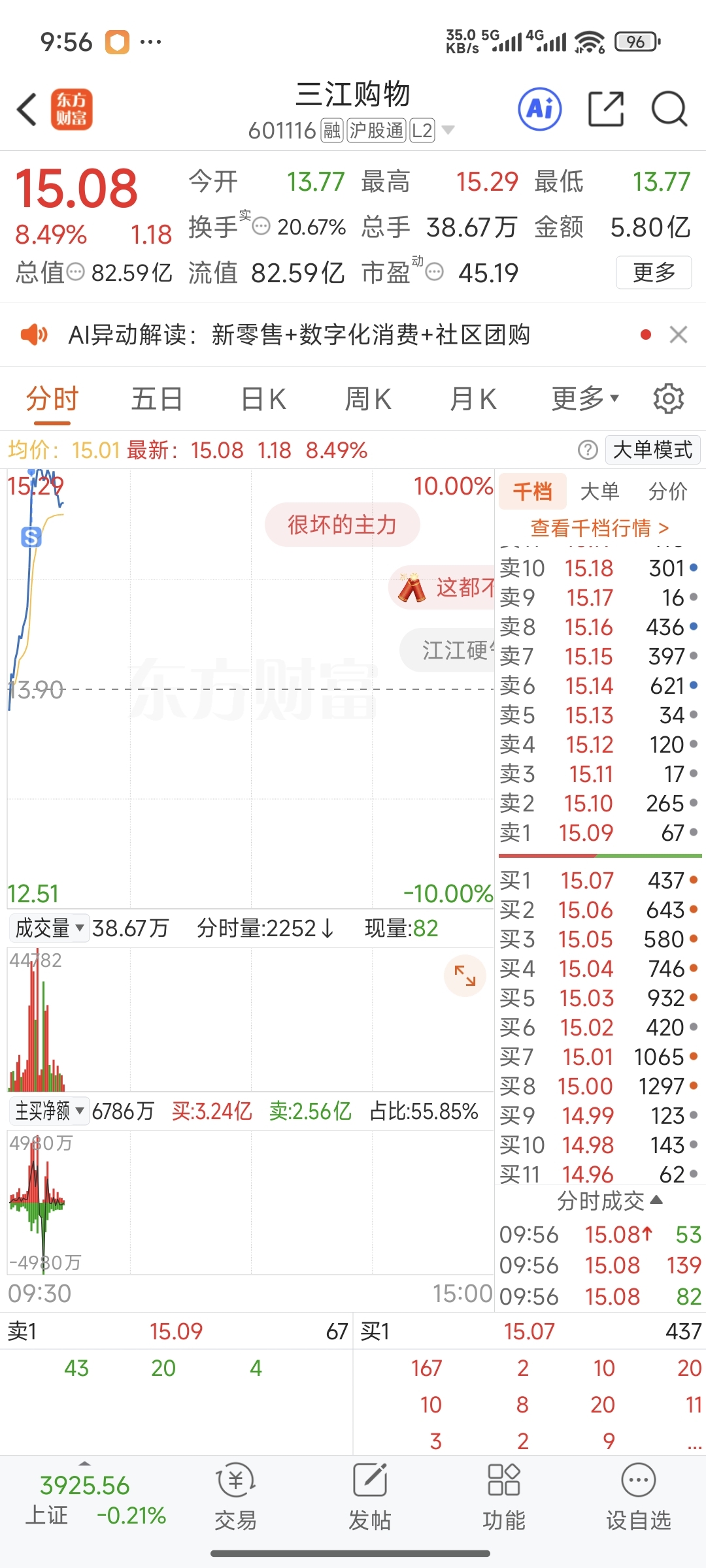 $三江购物(SH601116)$ 上次国庆天天看你们喊涨停,说什么扫街榜,周四直接大面,现在周末又开始涨停了,这让我怎么相信