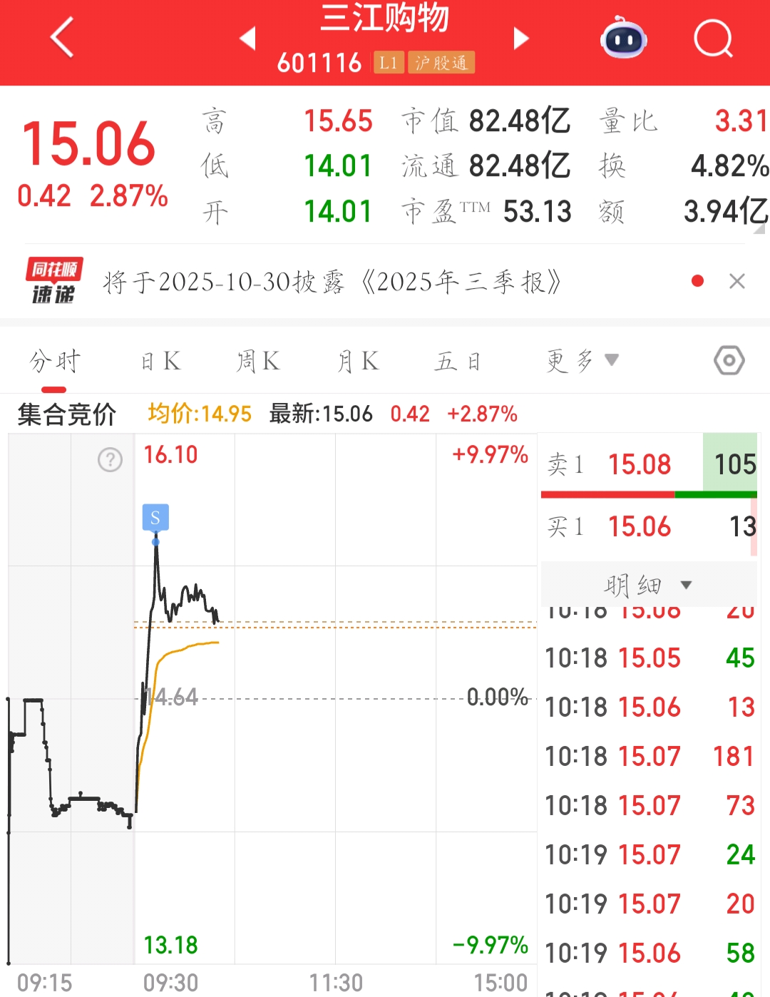 $三江购物(SH601116)$ 十月消费可能会起爆,但是我真的怕了,家人们我先走了