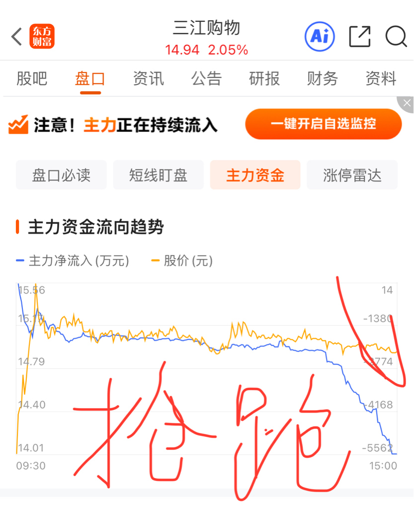 $三江购物(SH601116)$ 踩踏跑路开始