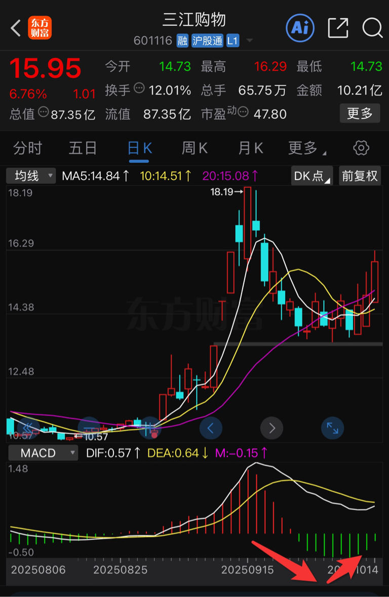 行不行,看这个走势就知道了,短期绿线收缩,MACD均线抬头,这波有望突破前高,