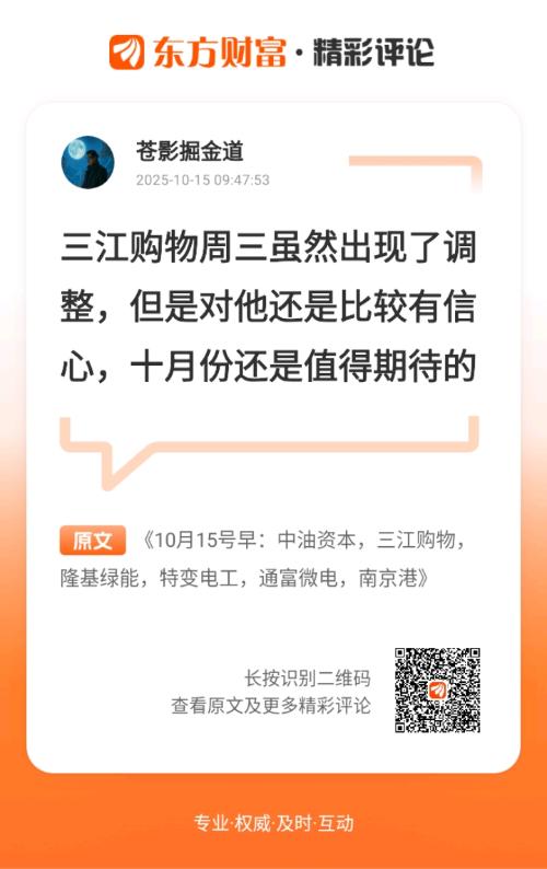三江购物(601116):公司属(消费概念股),近期科技板块明显退潮,紫金从高位个股流出,这类(低位消费标的)有望受紫金青睐。技术面来看,下方多条均线(开始拐头向上),成交量(温和放量且配合良好),上方压力位参考(18 元附近)。周三若低开后能获得(较好紫金接力),更像是(倒车接人的走势),水下有承接时可留意。