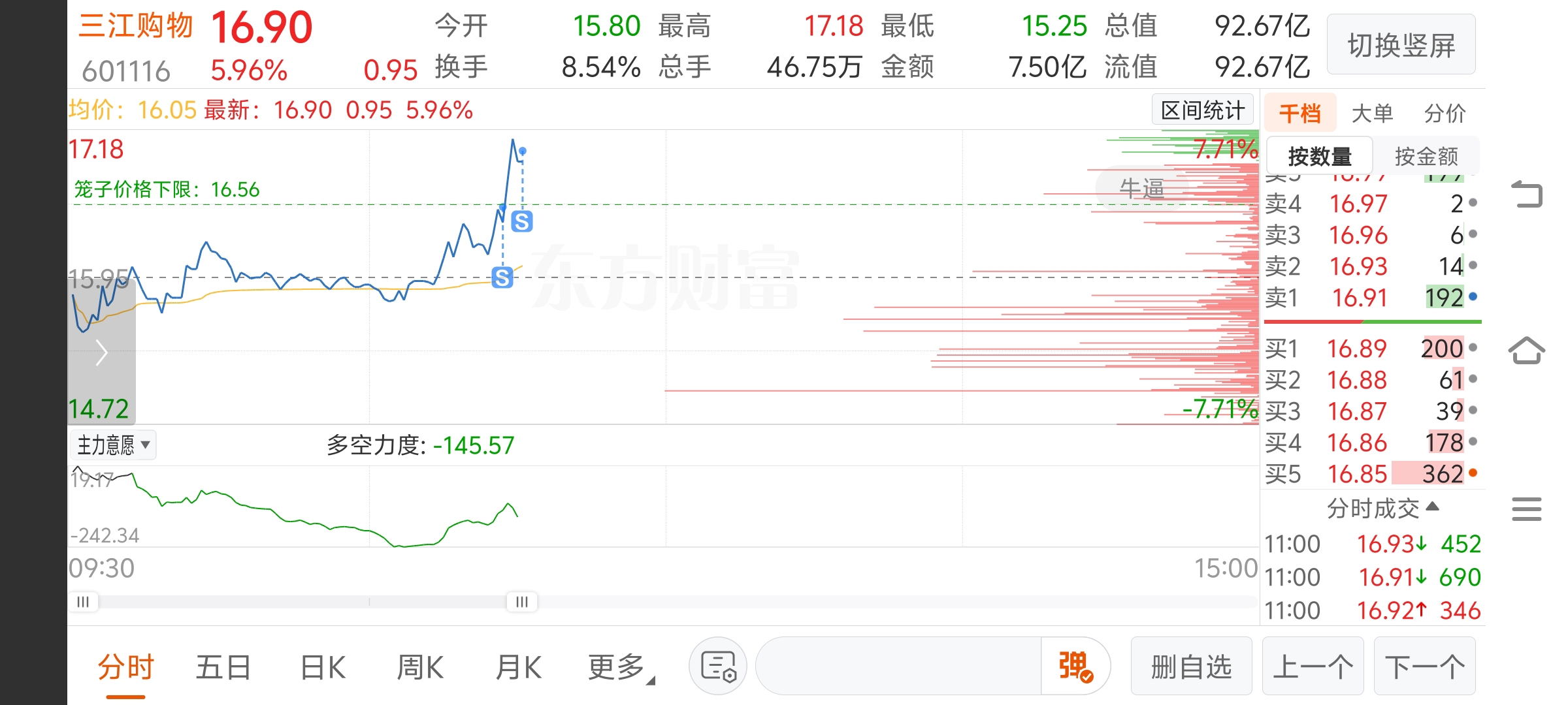 $三江购物(SH601116)$ 早上我就感觉不应该跌的,在国光上板,我就知道三江要涨,现在卖了后面在涨也不追了,挣认知中的钱。