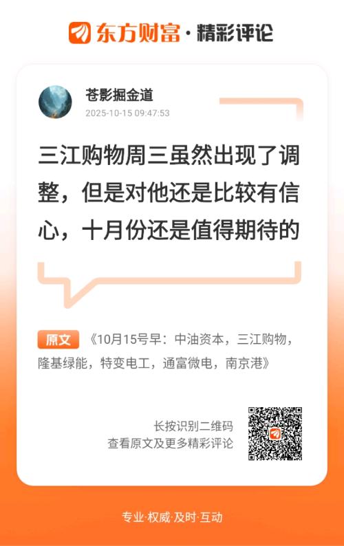 三江购物(601116):公司属(消费概念股),近期科技板块明显退潮,紫金从高位个股流出,这类(低位消费标的)有望受紫金青睐。技术面来看,下方多条均线(开始拐头向上),成交量(温和放量且配合良好),上方压力位参考(18 元附近)。周三若低开后能获得(较好紫金接力),更像是(倒车接人的走势),水下有承接时可留意。