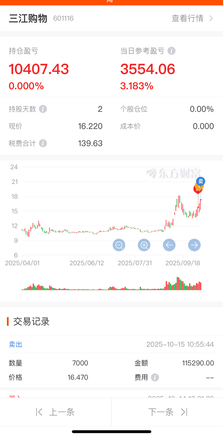$三江购物(SH601116)$ 小仓位打野美滋滋!
