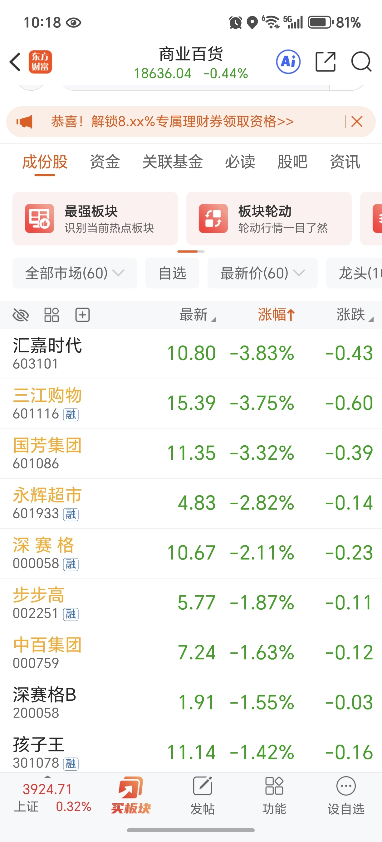 $三江购物(SH601116)$ 之前你虽然涨不过国光,但是你也是仅次于国光的龙二啊,现在怎么变成倒数第一名了