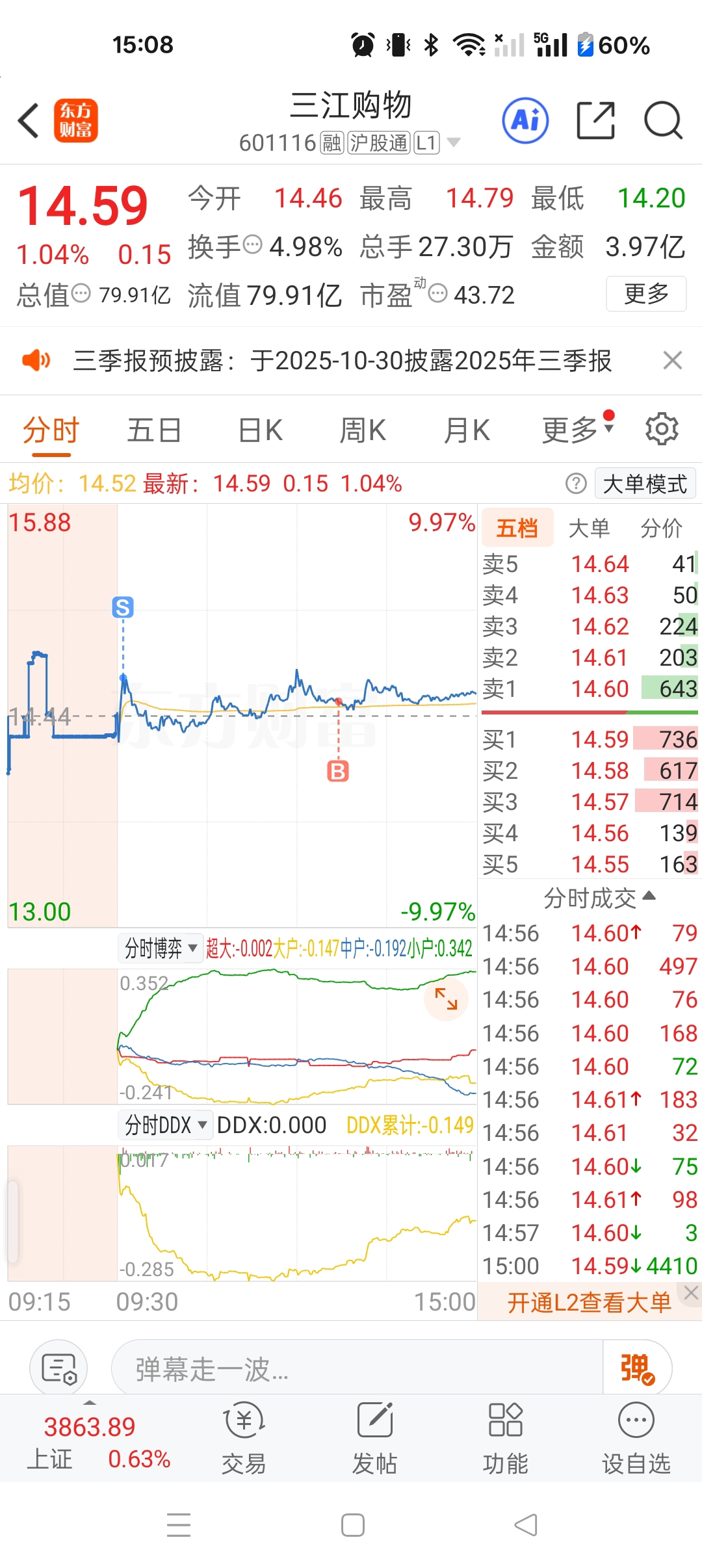 $三江购物(SH601116)$ 大家不要太乐观,明天70%水下,30%水上,水下低吸不要跑,尾盘水上可以加仓