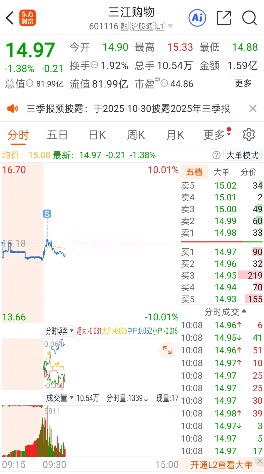 $三江购物(SH601116)$ 继续跌吧,今天抄底进,跟你杠上了