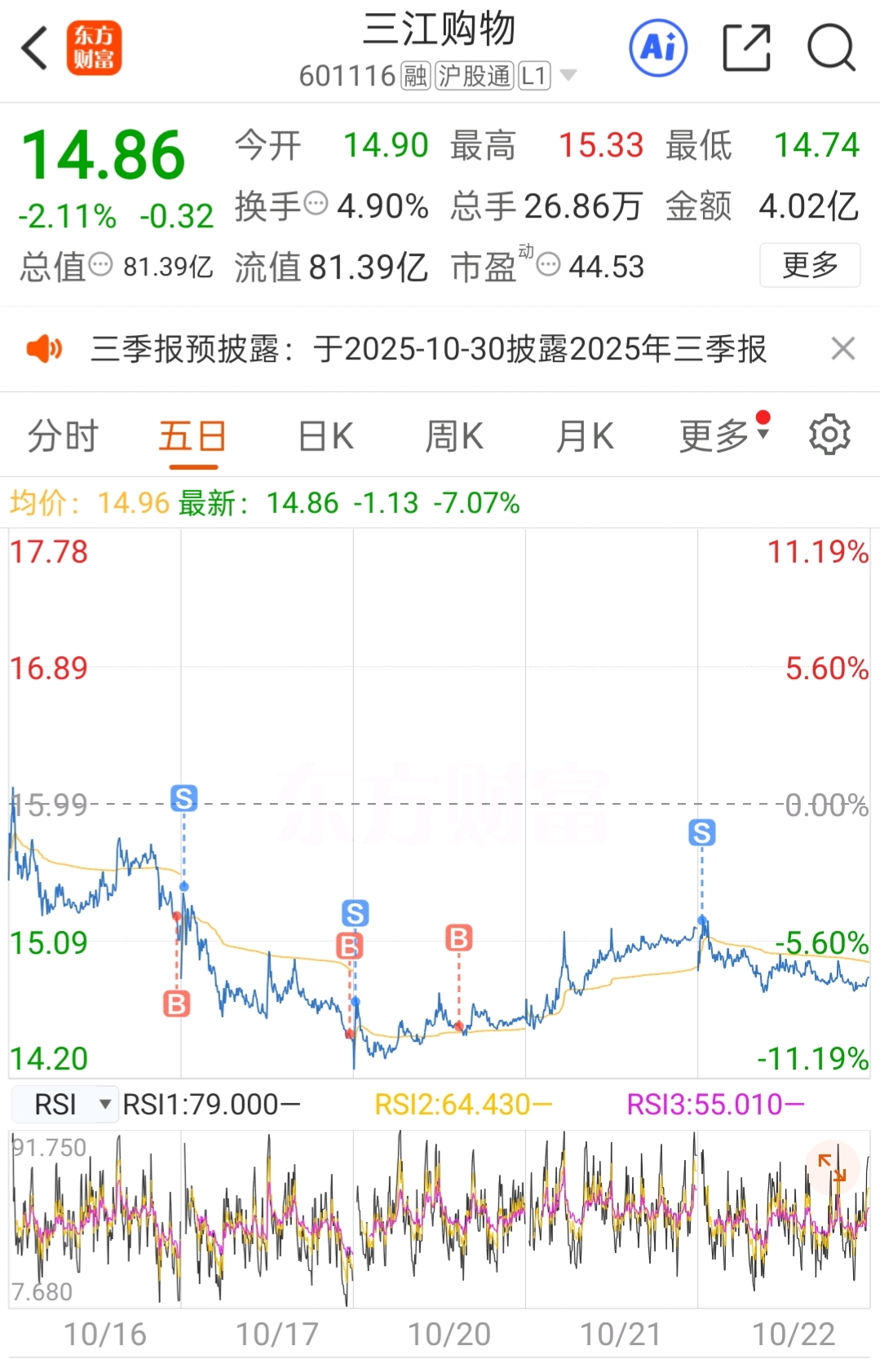 $三江购物(SH601116)$ 今天卖了没有买回来,个人觉得明天还会跌!明天可以抄底,不知道自己猜的对不对