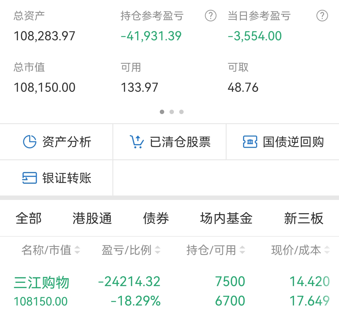$三江购物(SH601116)$ 头几天卖了步步高买了你,步步高就不跌了,现在你开始跌,为啥主力这样追杀我,今早开消费拉升,还加仓了几百股,收盘一看我勒个去!