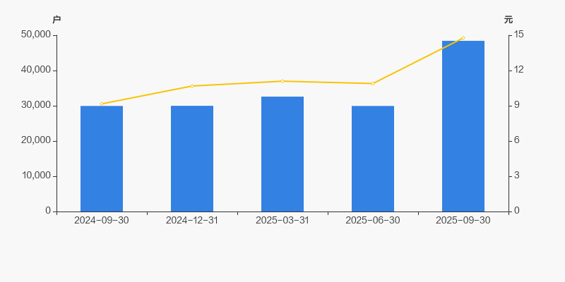 2024年9月30日至今,公司股东户数显著大幅增长,区间涨幅达61.71%。2024年9月30日至2025年9月30日区间股价上涨61.23%。