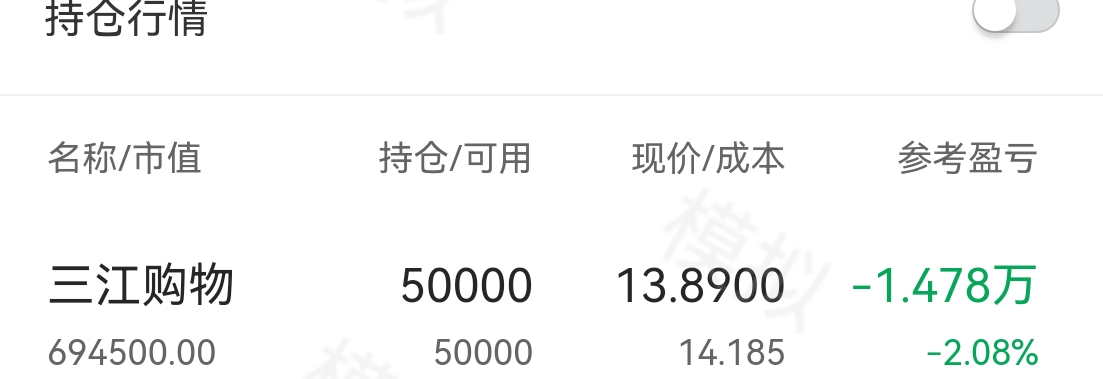 $三江购物(SH601116)$ 狠狠地买入,庄不让赚钱就死扛到底了!