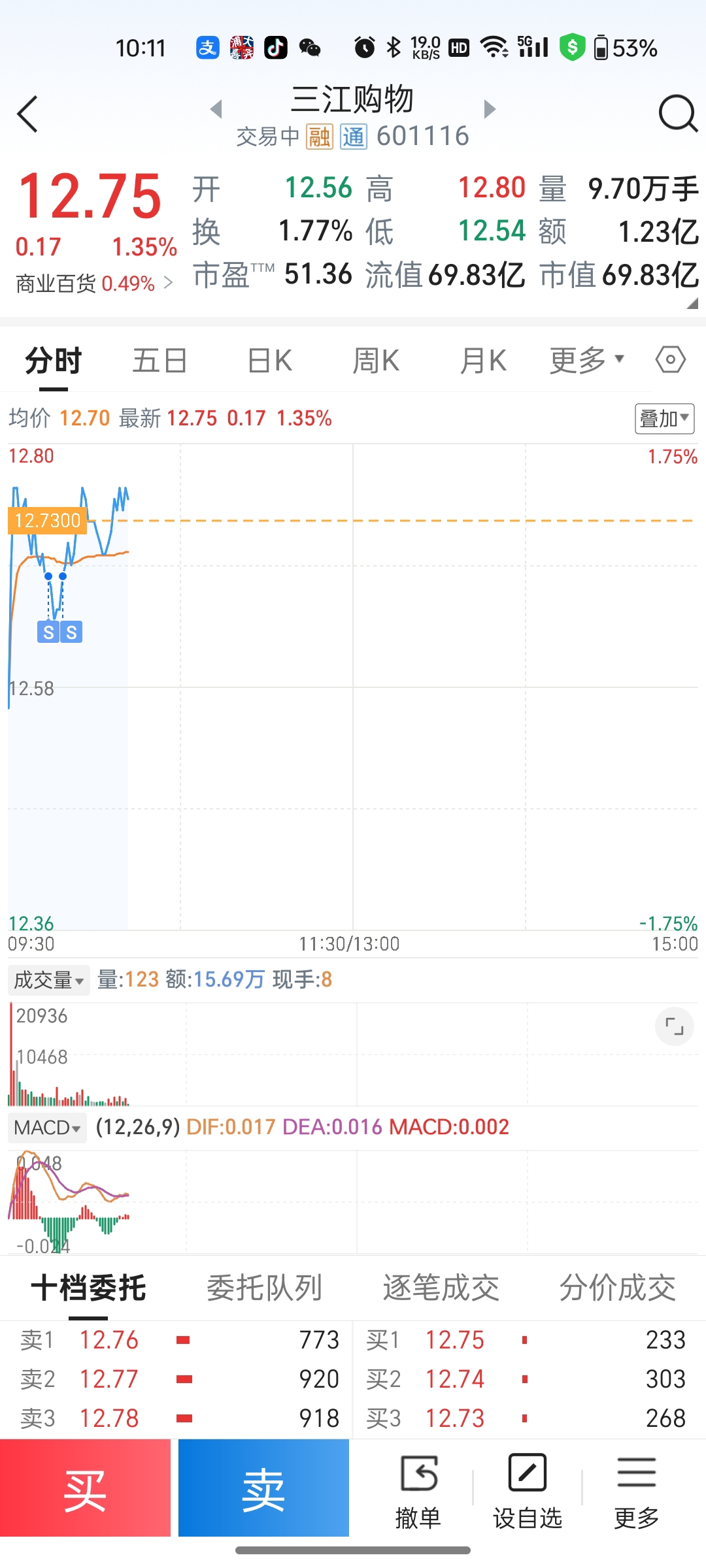 $三江购物(SH601116)$ 靠,割在了低点,亏3.5个万,但我不后悔