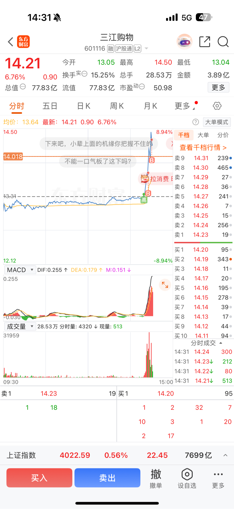 $三江购物(SH601116)$ 怕啥 一路点火跟上啊