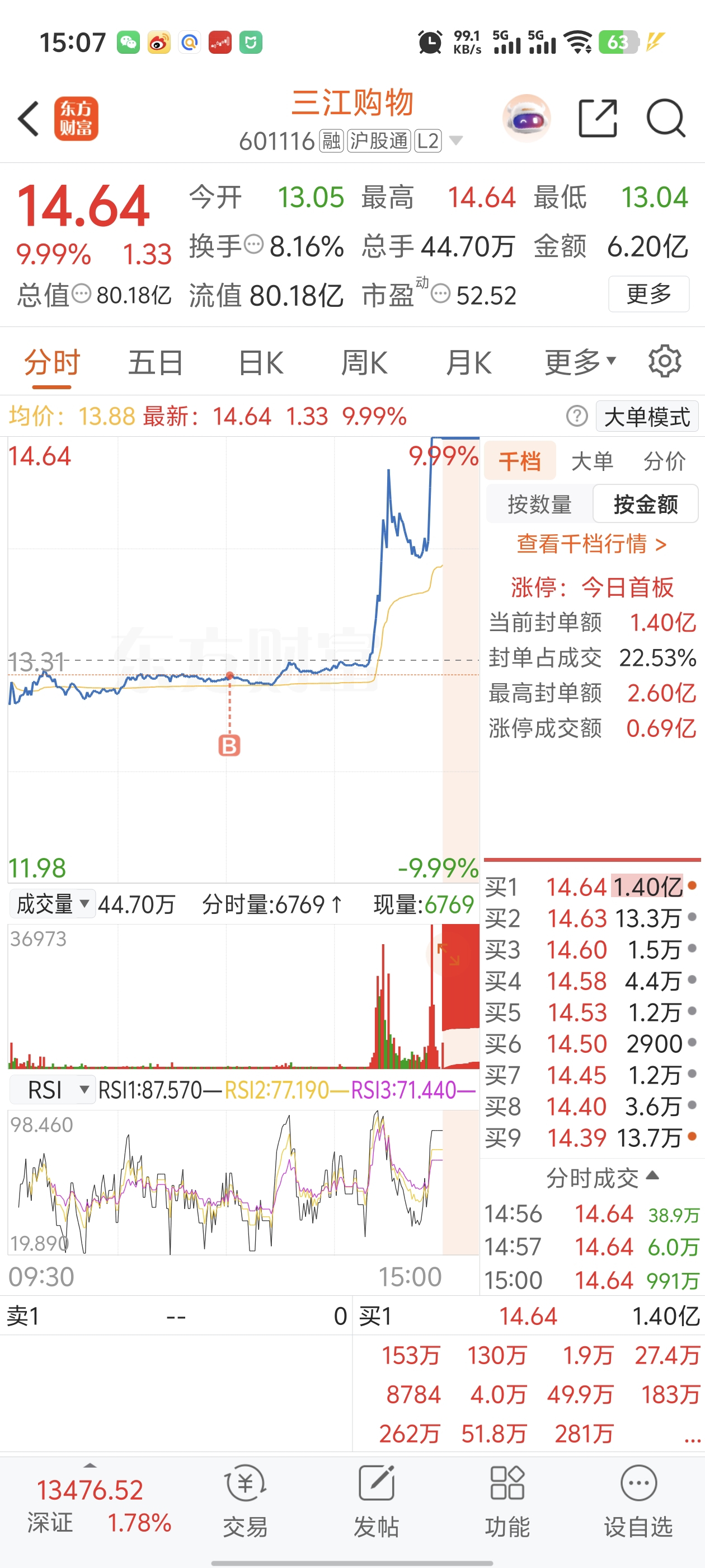$三江购物(SH601116)$ 好久没摸板了