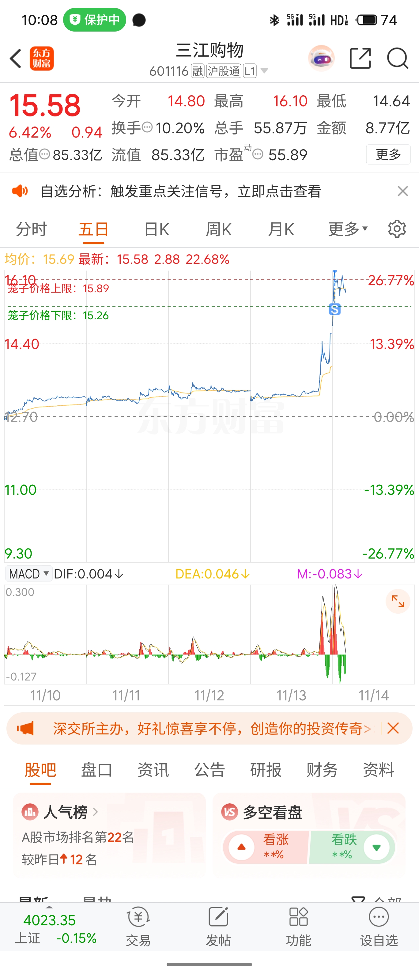 $三江购物(SH601116)$ 先退出了,等机会再进