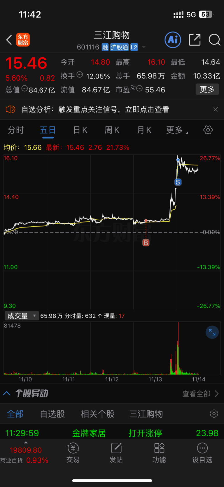 $三江购物(SH601116)$ 我饱了兄弟,下次再来