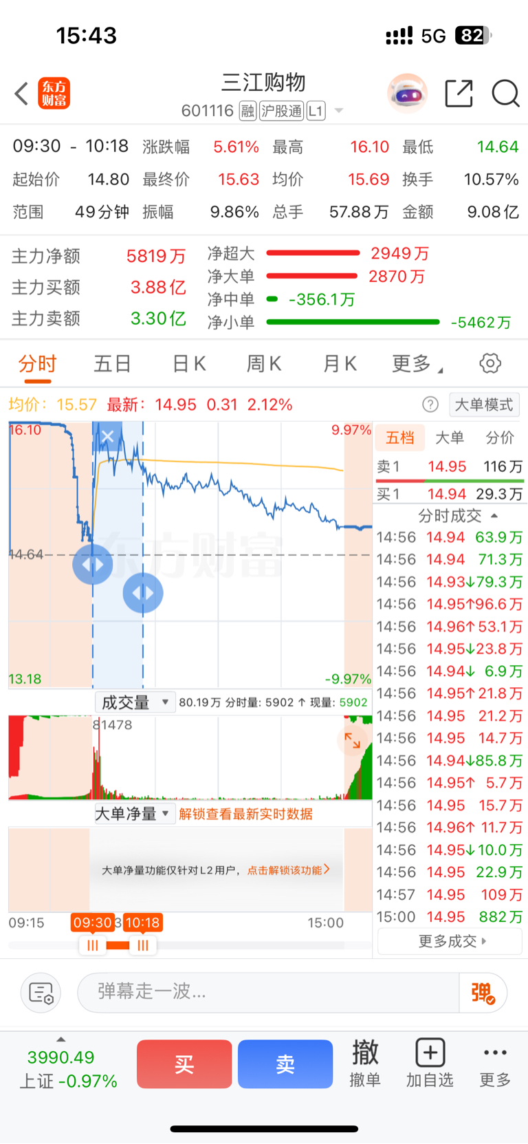 $三江购物(SH601116)$ 主力今天买点大部分成交在7个点以上,从7个点砸下来根本没量,说明什么?